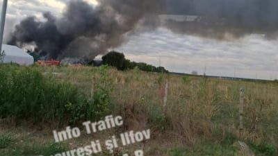 Un puternic incendiu a izbucnit luni dimineaţă, 25 august, în apropierea Capitalei, la o hală folosită pentru depozitarea maselor plastice, aflată în Buftea.