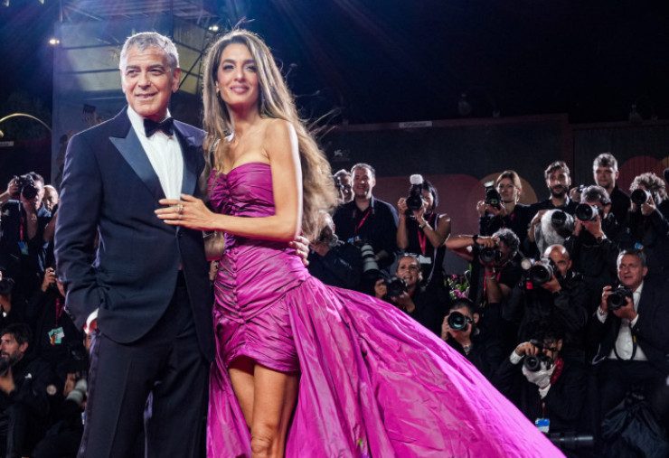 George și soția sa, avocata pentru drepturile omului Amal Clooney, în vârstă de 47 de ani, s-au căsătorit în 2014, la Veneția, și au devenit părinți în 2017. Amal i-a fost alături pe covorul roșu într-o rochie mini din catifea roșie, semnată Oscar de la Renta, atrăgând privirile tuturor.