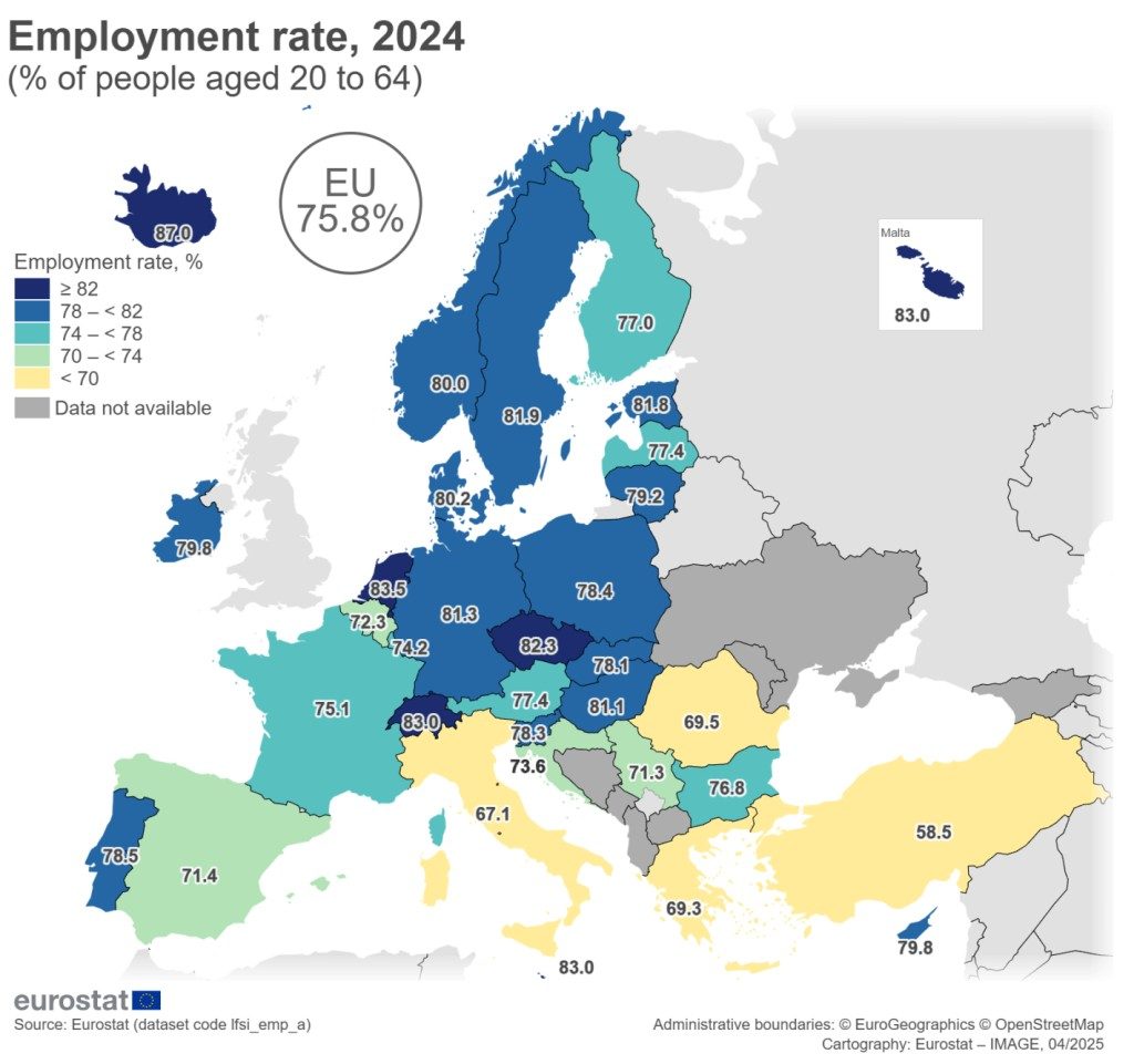 Rata de ocupare a populaţiei în vârstă de muncă (15-64 ani) a fost în trimestrul al II-lea al anului 2025 de 63,3%, una dintre cele mai scăzute din toate statele europene, a transmis luni Institutul Național de Statistică.