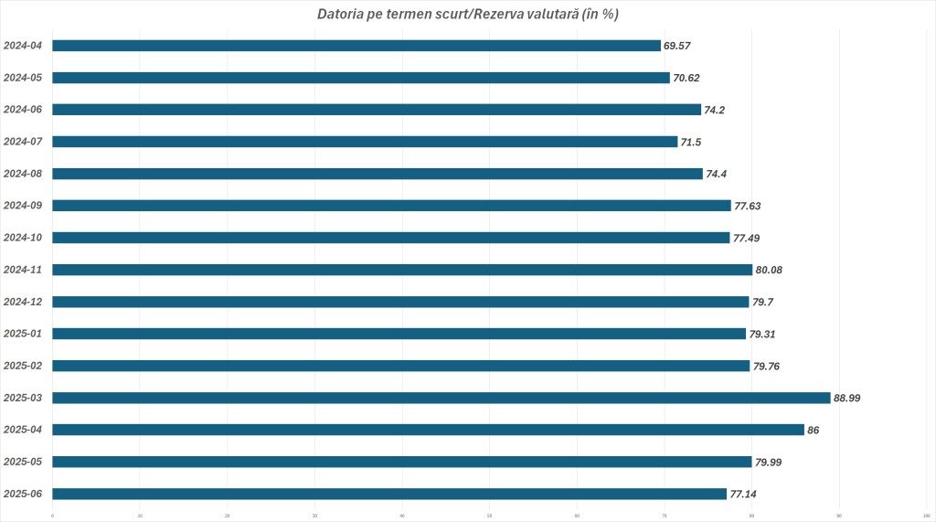 Protecție la lichiditate: Dacă rezervele acoperă întreaga datorie externă pe termen scurt, riscul unei crize provocate de refuzul creditorilor de a rostogoli împrumuturile—care ar putea forța ieșiri rapide de capital—este redus.