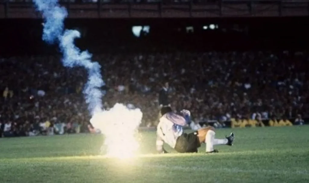 În minutul 67, o fană braziliană a aruncat o torță pe teren, iar portarul chilian Roberto Rojas s-a prăbușit la pământ. Când fumul s-a risipit, acesta se zvârcolea de durere, având o rană sângerândă deasupra ochiului.